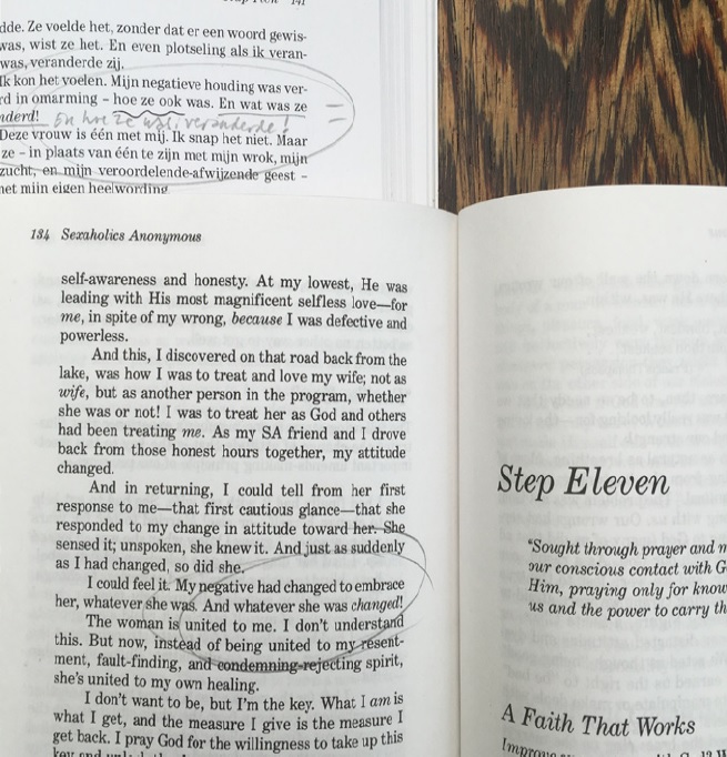 When the Belgian SA fellowship started 12 years ago, the Dutch fellowship got reanimated as they had already had an SA group 13 years before. That group had made a first translation of the White Book into Dutch, which both fellowships started using. It was not a printed version but a photocopied one. The overall translation was not bad, but at times really missed the mark.