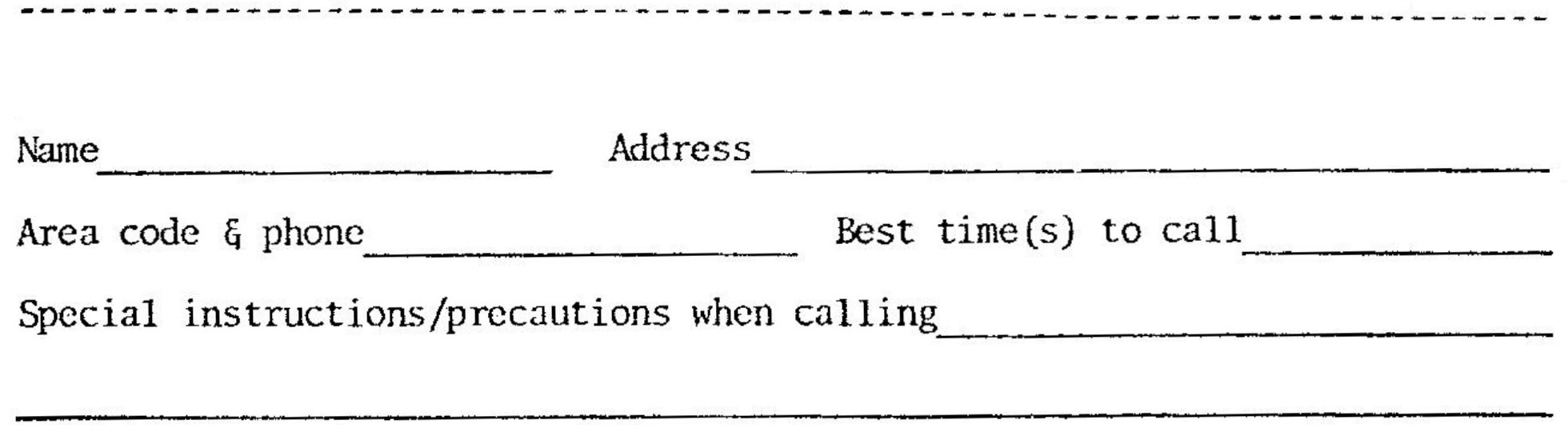 - Anyone wanting to get in on the phone/writing network: Fill out and return the form below.